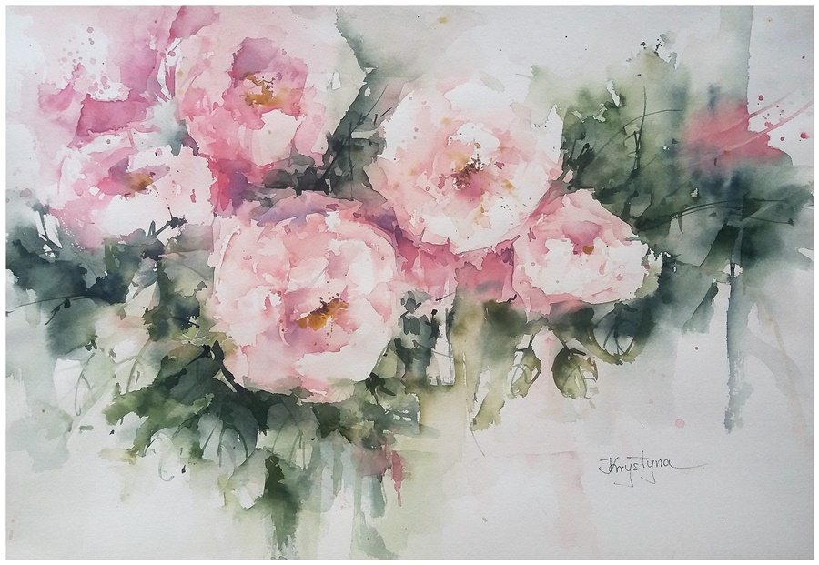 Akwarela to cudowna technika, która pochłonęła mnie od pierwszego momentu. Lekkość i przenikanie się kolorów, pokazywanie czegoś wyraźnie lub tylko sugerowanie pozostawiające odbiorcy miejsce na własną interpretację. Kwiaty są moim ulubionym motywem. Obserwuję je, a następnie przenoszę na papier bawiąc się przy tym kolorem i kompozycją ... chcę aby były sobą ale posiadały jakaś tajemnicę.