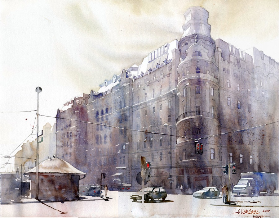 W mojej twórczości akwarelowej istotne piętno odcisnęła architektura. To ona nauczyła mnie estetyki i podejścia do kadrowania prac i wyboru tematów. Dlatego też w moich akwarelach najwięcej jest architektury ,a szczególnie tej którą sam zwiedziłem i poznałem. Większość moich prac to zapamiętane wrażenia, kolory i światło z odbytych przeze mnie podróży. Zwiedziłem w ten sposób Berlin , Paryż , Barcelonę ,Pragę , Brno, Wiedeń czy Sycylię. Bardzo często maluję z natury ,a pozostałe prace maluję z własnych fotografii.