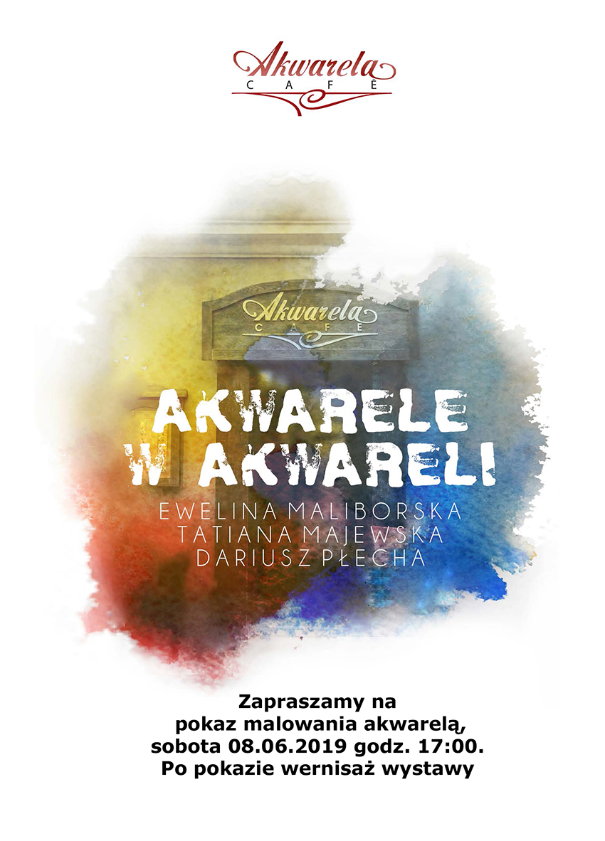 "Akwarele w Akwareli"- Zapraszamy na wystawę trzech lubelskich akwarelistów do kawiarni Akwarela Cafe, na Lubelskiej Starówce. Wernisaż wystawy poprzedzi pokaz malowania akwarelą. Sobota 08.06.19, godz, 17:00 Zapraszamy serdecznie.