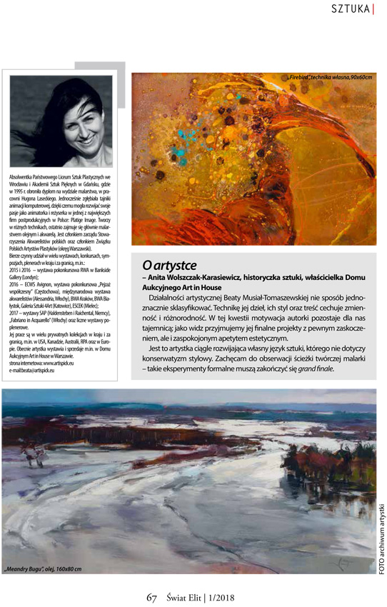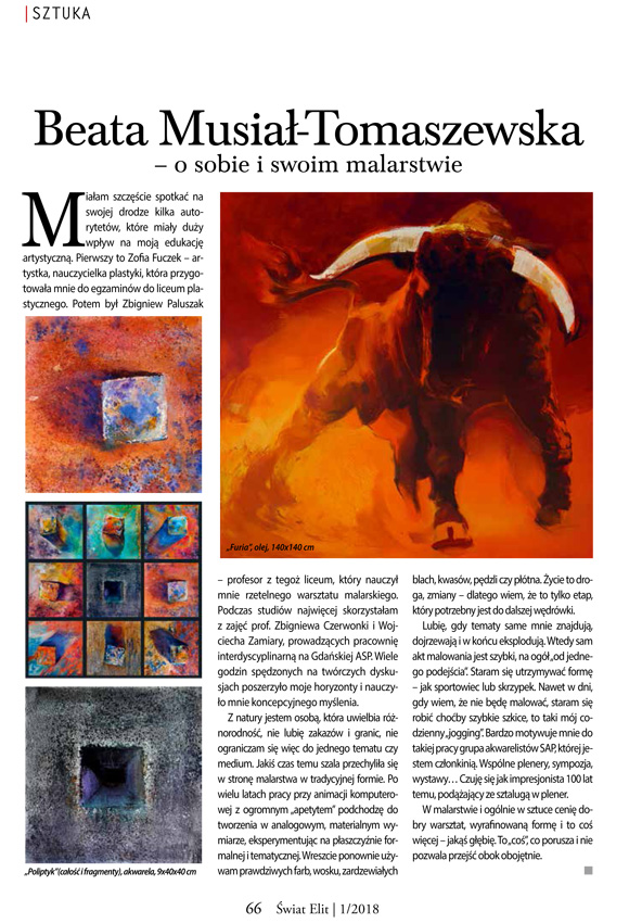 Z przyjemnością informujemy, że w najnowszym Świecie Elit można przeczytać artykuł o naszej akwarelistce Beacie Musiał-Tomaszewskiej.