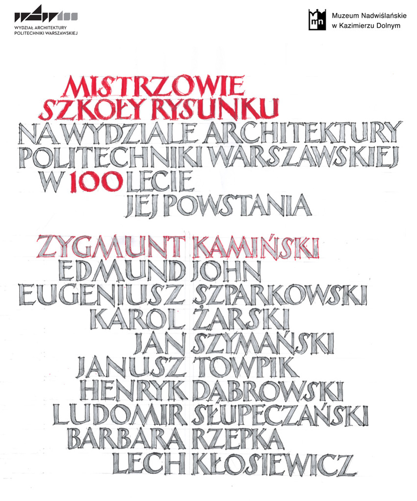 Agnieszka Zadura Dyrektor Muzeum Nadwiślańskiego w Kazimierzu Dolnym oraz Mirosław Orzechowski kierownik Pracowni Rysunku, Malarstwa i Rzeźby w Zakładzie Dziedzictwa Architektonicznego i Sztuki na Wydziale Architektury Politechniki Warszawskiej mają zaszczyt zaprosić na otwarcie wystawy Mistrzowie Szkoły Rysunku na Wydziale Architektury Politechniki Warszawskiej w 100-lecie jej powstania.