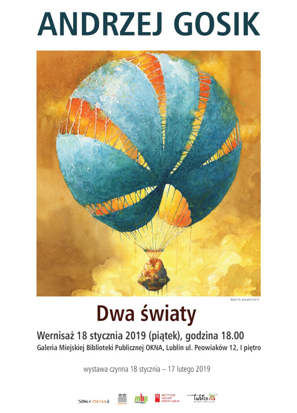 W piątek - 25 stycznia o godzinie 18:00 w Galerii OKNA Miejskiej Biblioteki Publicznej w Lublinie Przy ulicy Peowiaków 12 (I piętro) odbędzie się wyjątkowy wernisaż wyjątkowego artysty. Swoje absolutnie fantastyczne prace zaprezentuje malarz, grafik i architekt ANDRZEJ GOSIK!!! Wystawa nosi tytuł ,,Dwa światy".
