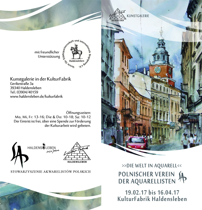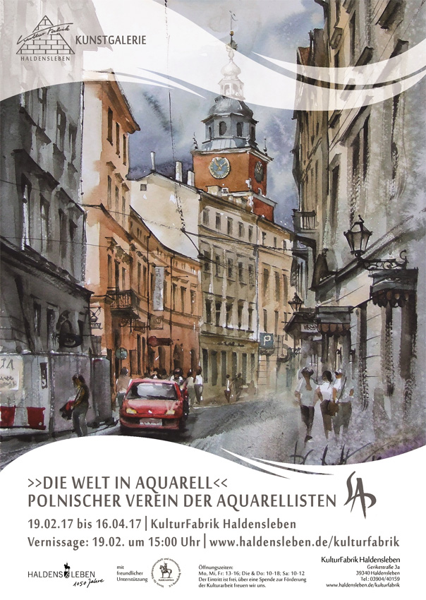 Serdecznie zapraszamy na wernisaż wystawy SAP „DIE WELT IN AQUARELL” w Kunstgelerie in der KulturFabrik, Gerikestraße 3a w Haldensleben, 19 lutego 2017 o godz. 15:00. Wystawa będzie trwała od 19.02 do 16.04.2017.