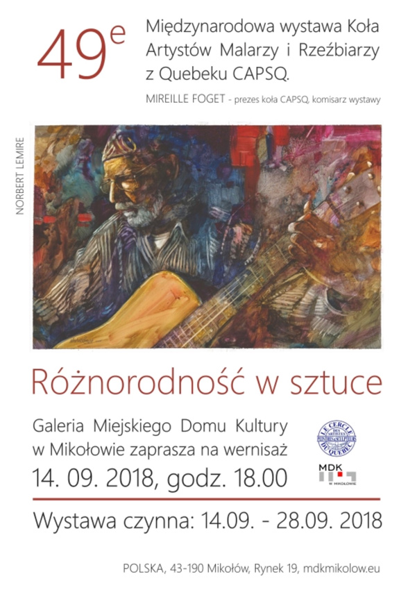 Zapraszamy serdecznie na pierwszą w Polsce a kolejną 49. Międzynarodową Wystawę Artystów Kanadyjskich w Mikołowie niedaleko Katowic.