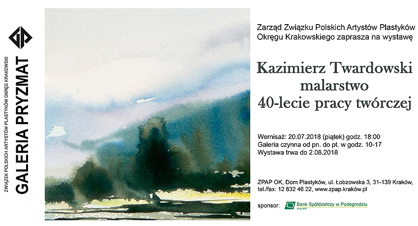 Serdecznie zapraszamy na wystawę Kazimierz Twardowski malarstwo 40-lecie pracy twórczej do Galerii Pryzmat, wernisaż 20. lipca 2018 r o godzinie 18:00. Wystawa trwa do 2. sierpnia 2018 r.