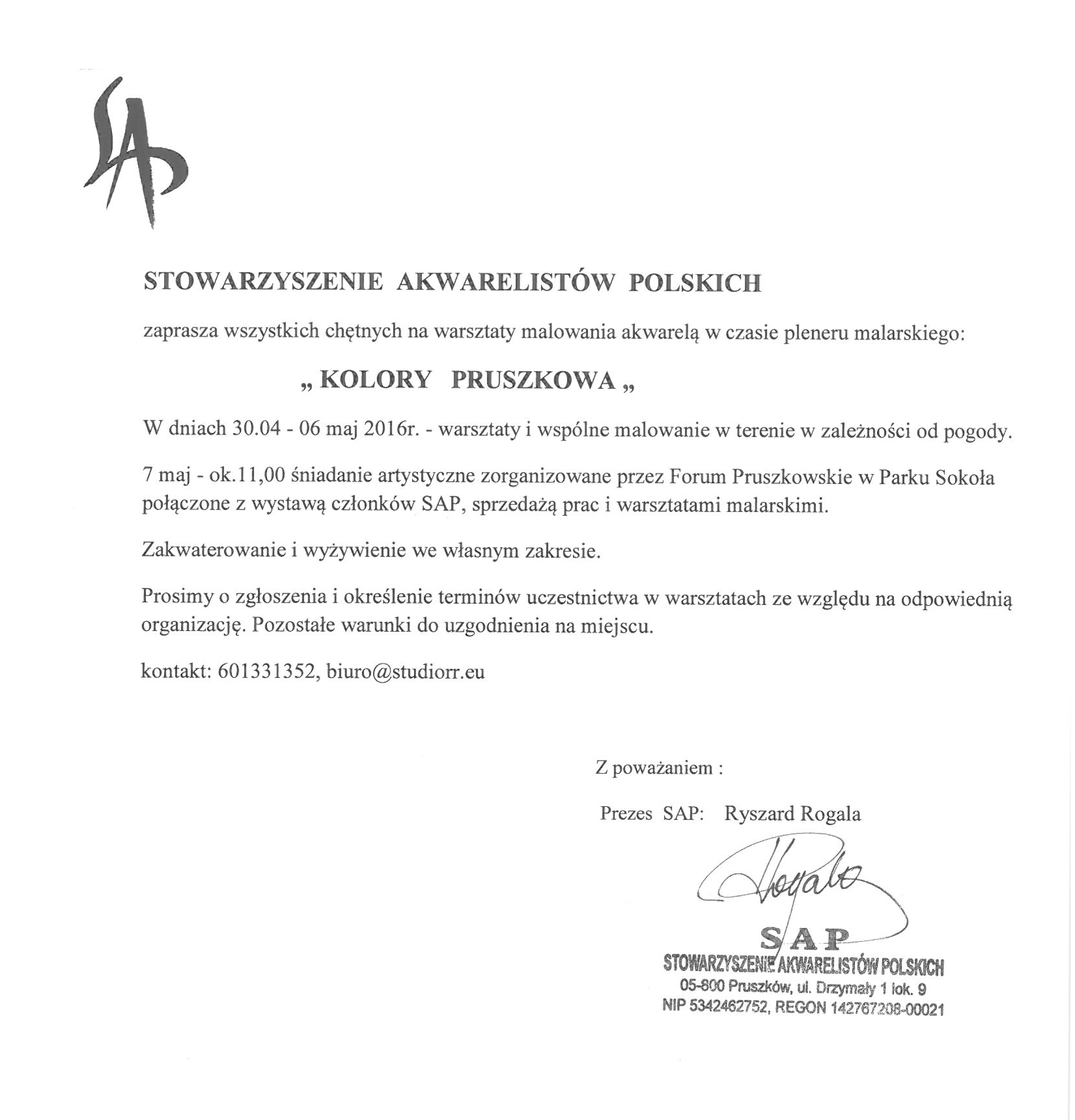 © SAP - Stowarzyszenie Akwarelistów Polskich 2026 Stowarzyszenie Akwarelistów Polskich.