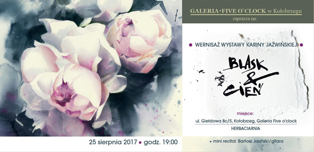 Wernisaż wystawy 25 sierpnia 2017, godz. 19:00 Galeria FIVE O' CLOCK w Kołobrzegu, ul. Giełdowa 8c/5 + mini recital: Bartosz Jasiński/ gitara.